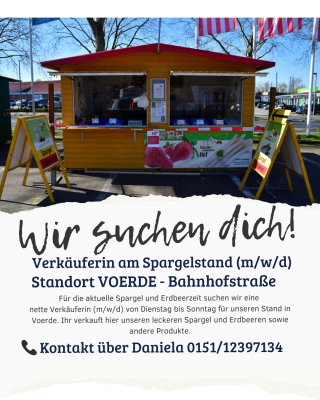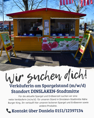 Freundliche und motivierte Verkäuferinnen für den Verkauf von Spargel und Erdbeeren auf 603,- €-Basis, gerne auch RentnerInnen, gesucht.